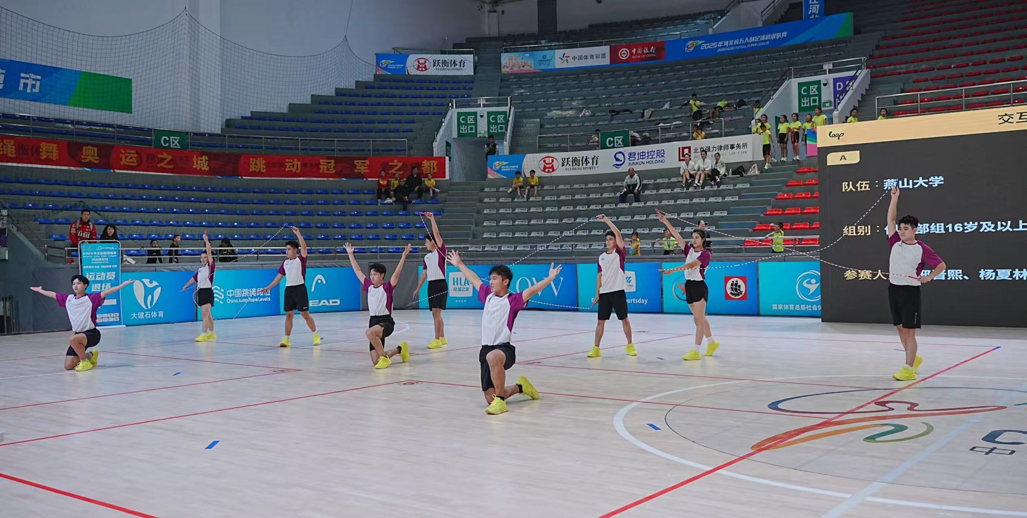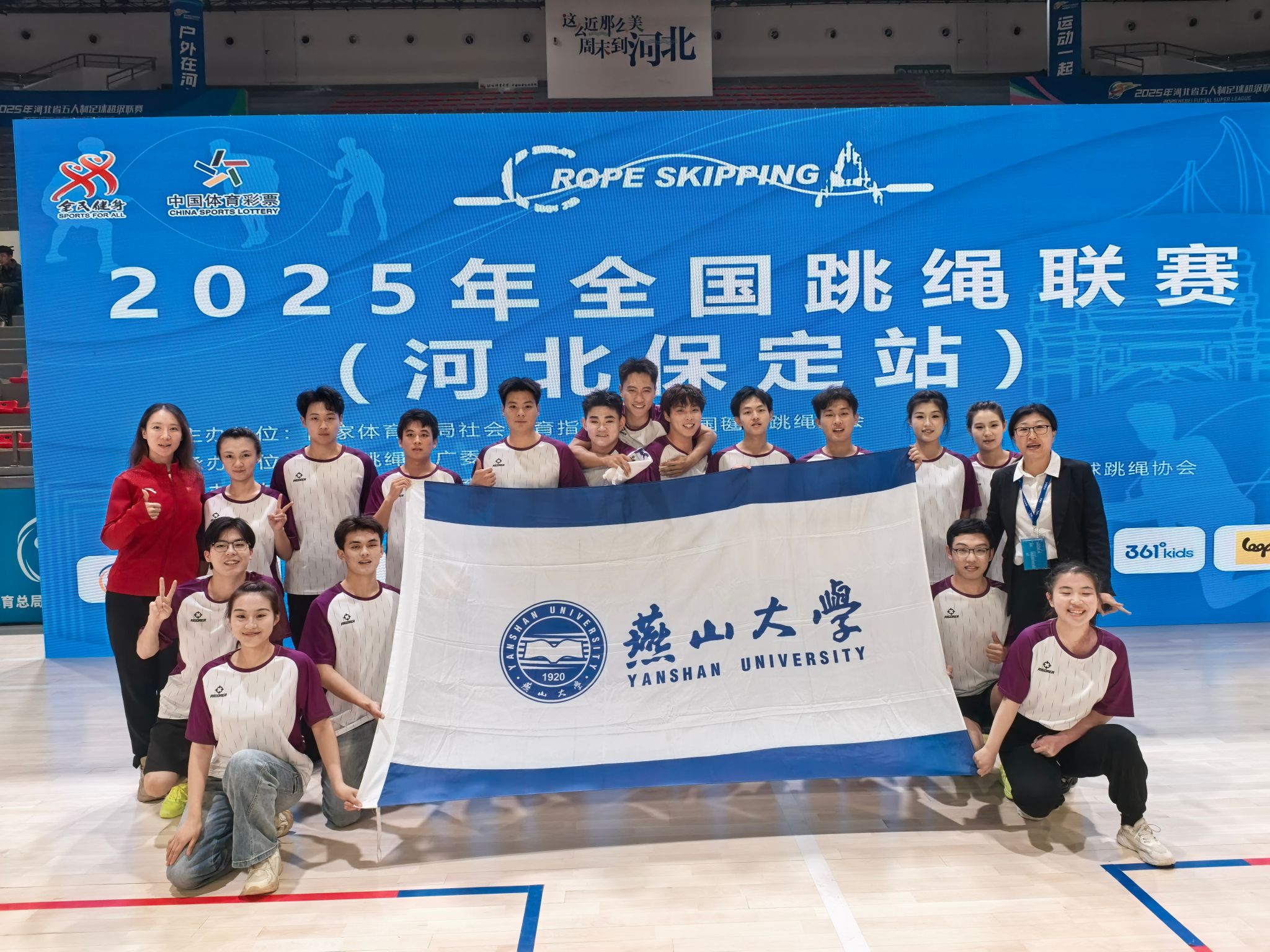 2025年10月11日至14日,由国家体育总局社会体育指导中心、中国毽球跳绳协会主办的2025年全国跳绳联赛(河北保定站)在保定市体育馆举行,此次赛事吸引了来自全国13个省、市、自治区及直辖市的众多优秀跳绳爱好者与队伍参与。燕山大学JRY花样跳绳队由体育学院朱珺老师和高婧老师担任教练,带领共计16名学生参赛,其中包括10名体育学院学生和6名普通学院学生。