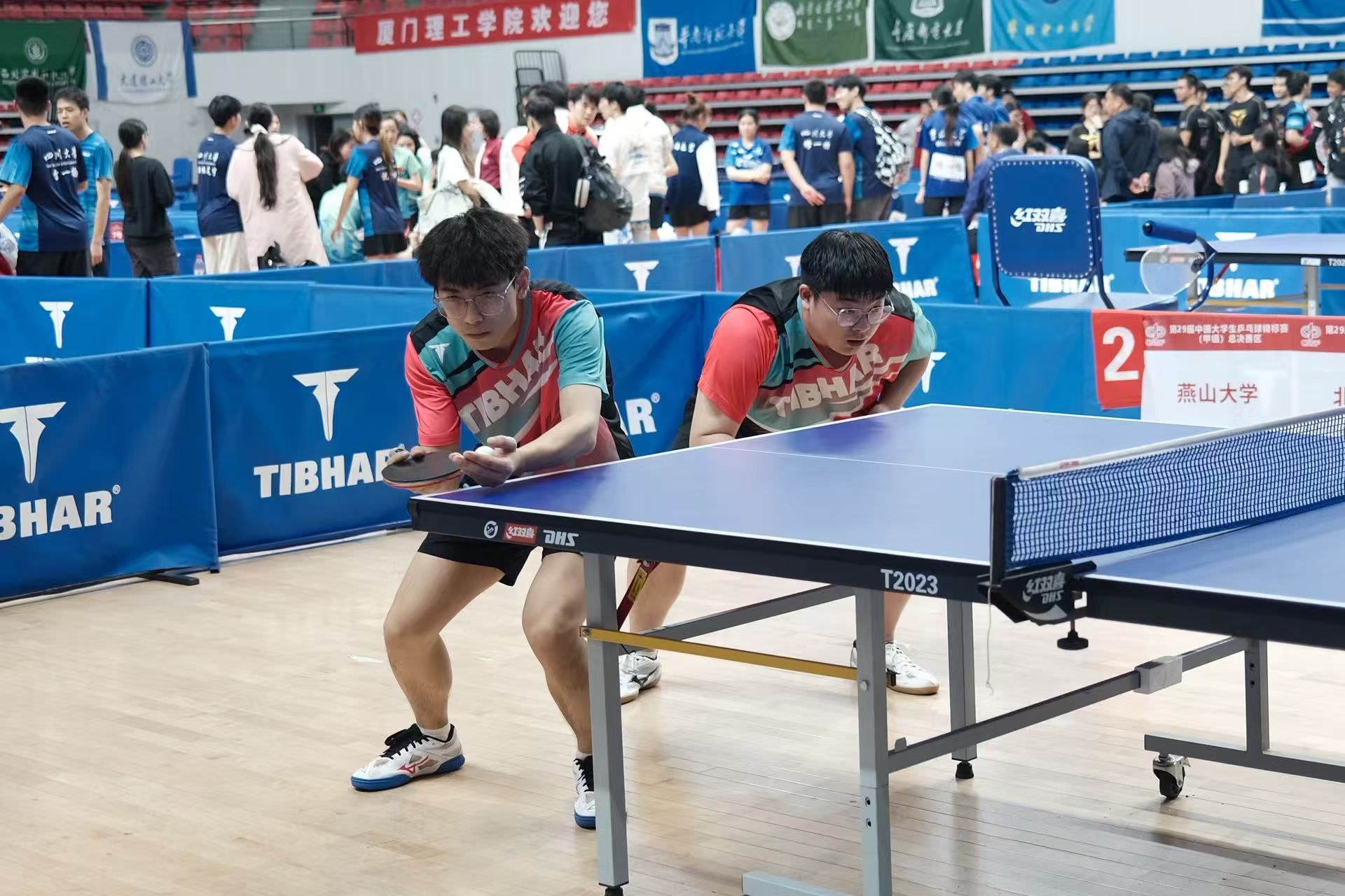 赛场上,燕大健儿们个个全力以赴、奋勇争先:混双组合李冰、徐畅发挥亮眼,全程保持七场六胜的高胜率,小组赛阶段豪取三连胜,更击败了东南赛区冠军苏州大学组合;女双陈焯玉、刘呈钰在多场逆境对决中展现超强韧性,多次实现精彩翻盘;男双组合乔培恒和朱润辰默契配合,总是拿下制胜一分;王淦、李阳、唐宝耕轮番出战男单,侯玥琳、张玙璠、杨清宇交替角逐女单,每位队员都顶住压力,为团队贡献关键分数。