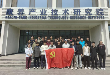 此次活动依托康养产业技术研究院的产业平台优势,将教学场景与真实康复需求无缝对接。活动尾声,全体师生在研究院大楼前合影留念——二十余名师生身着休闲装,在康养产业技术研究院的招牌下整齐列队,前排党员教师手持党旗,旗帜上的镰刀锤子图案在阳光下格外醒目,成为“党建+业务”深度融合的生动注脚。